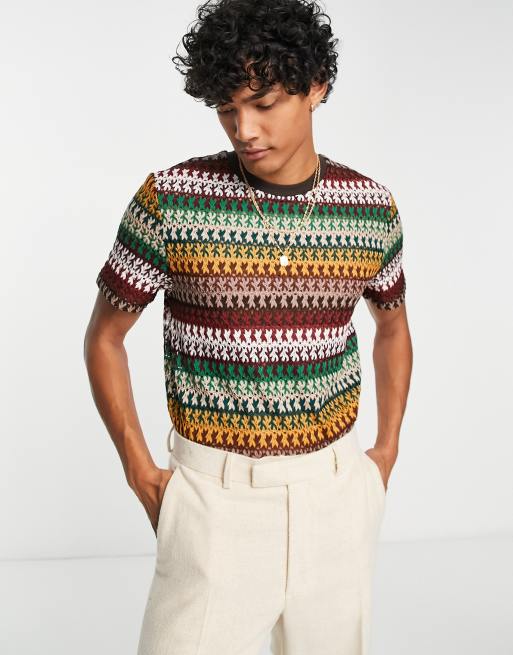 Asos Design Strick T Shirt Mit Strukturmuster In Gelb Und Grun Asos